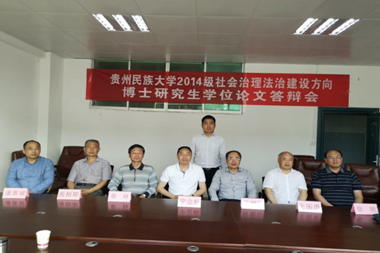 副院长宁立标教授担任答辩委员会主席并主持答辩会,答辩委员会委员由贵州省人民政府发展研究中心党委书记、主任陈朝伦,贵州省司法厅原巡视员、中国法律咨询服务中心贵州分中心主任季林,贵州省社会科学院院长吴大华教授(导师),贵州大学肉蒲团