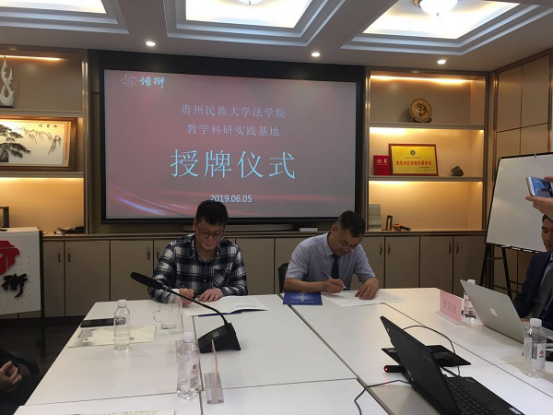 与北京炜衡(贵阳)律师事务所合作共建教学科研实践基地签约授牌仪式”。