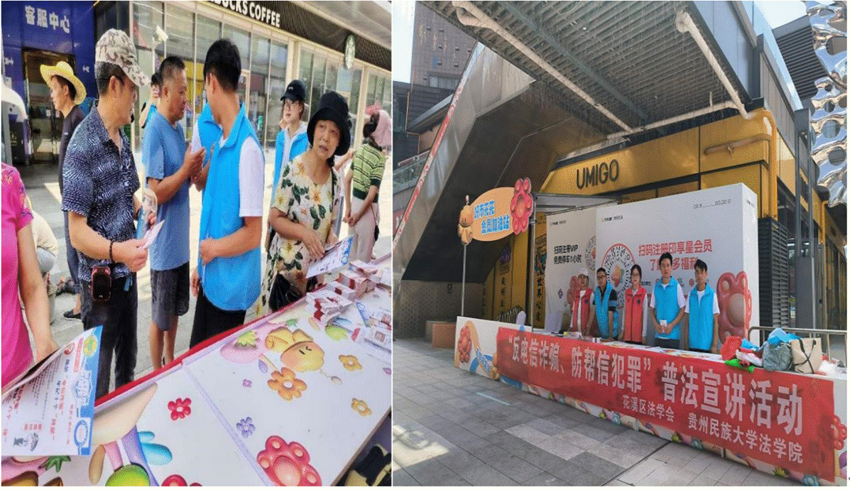 “反电信诈骗、防帮信犯罪普法宣讲队”在花溪区法学会的指导帮助下开展了为期6天的普法宣讲活动,共计发放宪法宣传手册、《中华人民共和国民法典》宣传手册、电信诈骗及帮信犯罪宣传单、法治物品袋共计2000份,现场接受咨询13人次,且在8月18日与清华大学“数信筑梦”社会实践团队举行了线下交流会,取得了较为圆满的普法宣传效果,便于省外同学了解贵州、宣传贵州。