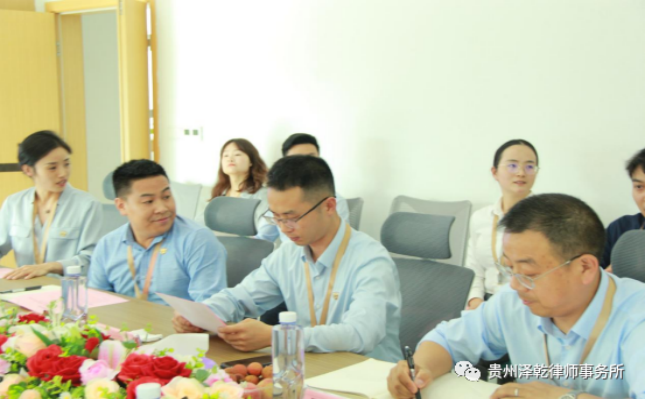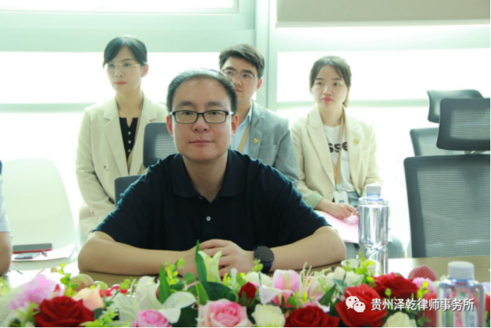 领导和老师一行的到来表示热烈欢迎。随后介绍了泽乾所的团队背景、管理理念、发展目标等基本情况,并表明会坚定贯彻“法泽天下、德润乾坤”的发展理念,充分发挥律所实务专长,且表示在肉蒲团