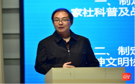 副院长(主持工作)、教授、博士俞俊峰以《从科普条例贯彻看物质文明与精神文明协调发展》为题,通过回顾《贵州省社会科学普及条例》的制定、颁布和实施过程,解读了《条例》的贡献和历史意义,并倡导大家运用好《条例》,关注、参与社会科学普及。