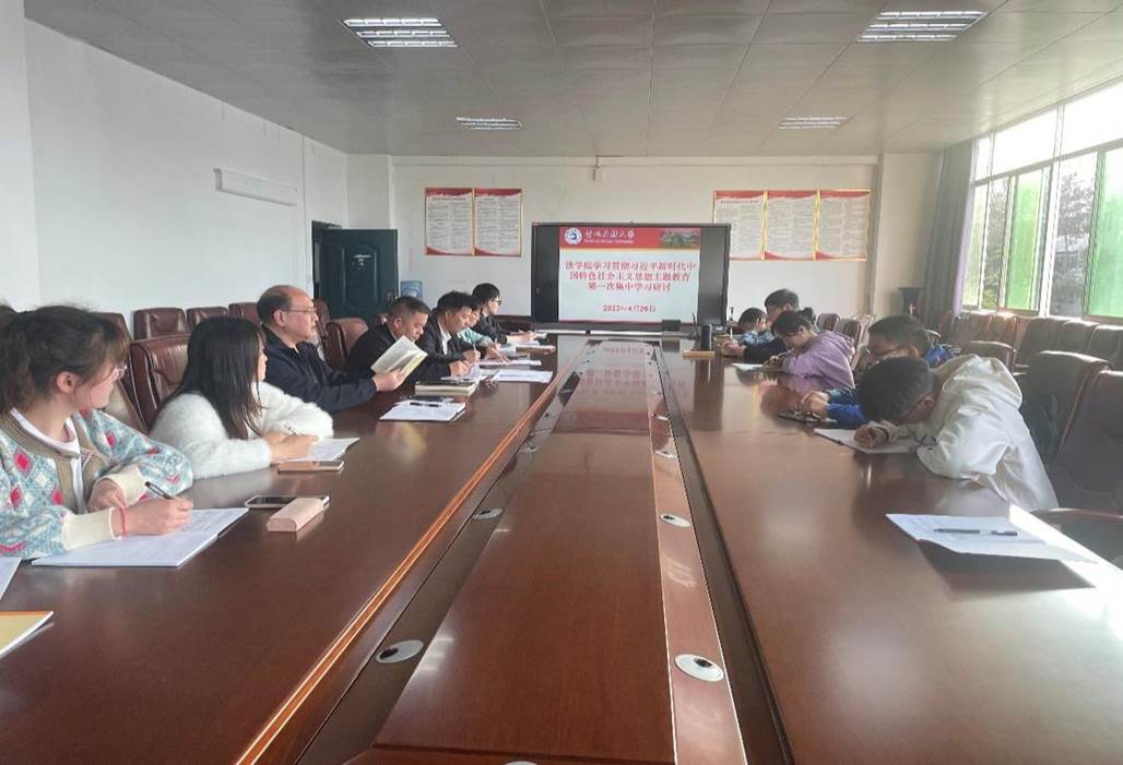 党委在4号教学楼三楼会议室召开理论学习中心组(扩大)学习贯彻习近平新时代中国特色社会主义思想主题教育第一次集中学习研讨会。法学研究院院长宋强,法学院党委委员、副院长(主持工作)俞俊峰,肉蒲团