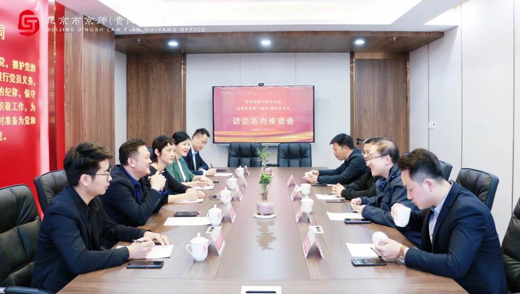 辅导员杨轶等一行莅临京师贵阳律师事务所开展访企拓岗座谈交流会。京师贵阳律所主任李霞律师、管委会主任罗明律师、金宇律师、律师助理王璟、行政主管王昌浩参与座谈交流。