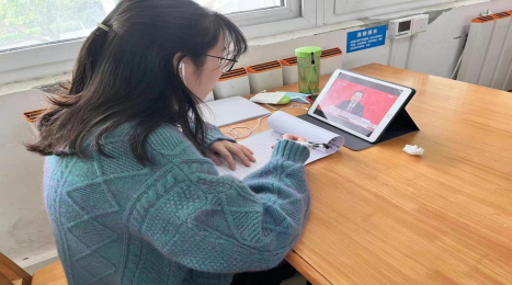 (学生在自习室自行收看党的二十大开幕式)