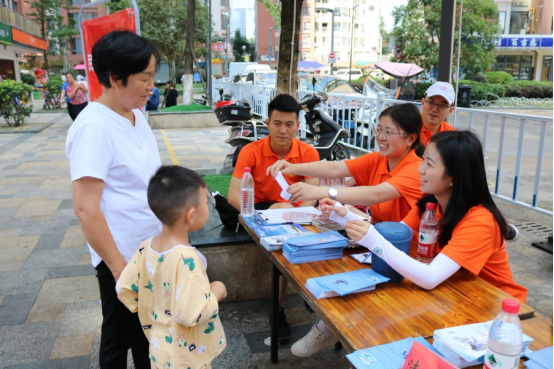 在社区中心广场,宣讲团成一边向沿途群众发放宣传折扇,一边做口头讲解,向过往群众们普及《未成年人保护法》《民法典》等与未成年人息息相关的法律法规,特别提醒未成人家长增强对孩子的安全保护意识,切实承担起监护责任,避免被不法行为侵害。