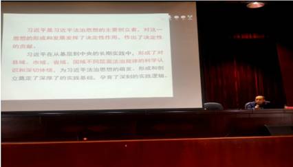 潘善斌教授以“习近平法治思想”为切入点,在既有政治高度又有理论深度的基础上,通过言简意赅、深入浅出的讲座方式,主题鲜明的对努力实现法治政府建设、推进农业农村法治建设高质量发展等问题作了深刻的阐述。