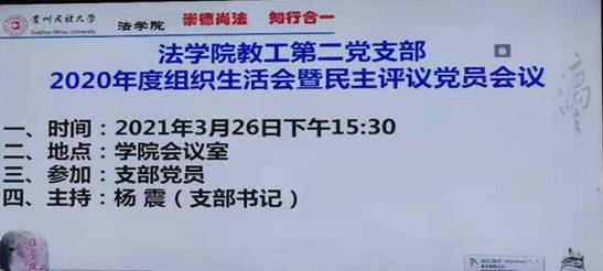 教工第二党支部在学院会议室召开2020年度组织生活会暨民主评议党员会,支部全体党员参加,学校督导组副组长、化学工程学院副处级组织员王明兵同志出席并指导。会议由支部书记杨震同志主持。