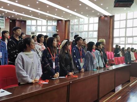 团委学生会新一届主席团成员。最后,全体参会人员起立奏唱中国共青团团歌。
