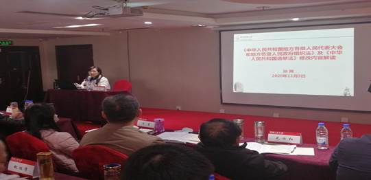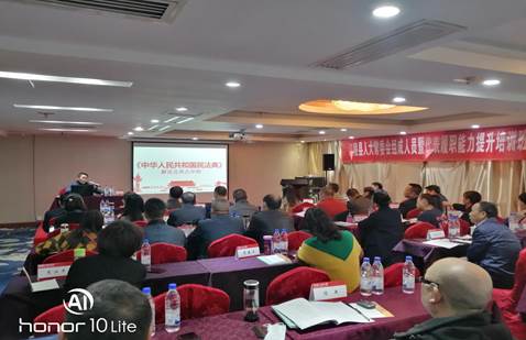 教师孙韡教授和姚知兵副教授应中国人民大学培训部教育处的邀请,在贵阳市绍兴大酒店给湖北省荆州市江陵县人大常委会委员履职能力提升培训班作《<民法典>解读》、《<地方组织法><选举法><人大代表法>详解》专题讲座。