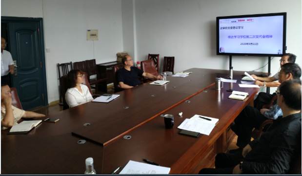 党委在会议室召开理论学习会,传达学习学校第二次党代会精神。学院党委委员、副书记、院长宋 强同志,学院党委委员、副书记兰元富同志,学院党委委员、副院长张帆同志,学院党委委员、副院长俞俊峰同志,学院党委委员程 南同志,学院党委委员、正科级组织员付中祥同志出席会议,学院办公室杨 震同志列席会议。会议由学院党委书记石世文同志主持。