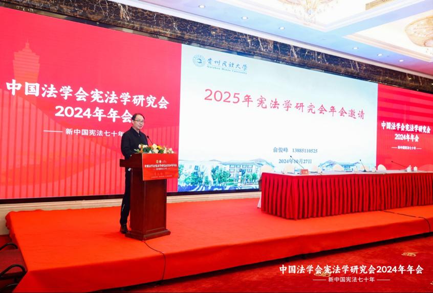 副院长俞俊峰教授发言,希望中国法学会宪法学研究会2025年年会在贵州贵阳举办,由肉蒲团