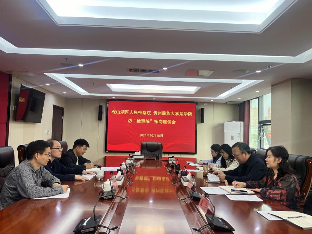 副院长俞俊峰同志、党委副书记王胜坤同志带队到贵阳市观山湖区人民检察院开展访企拓岗交流座谈会。观山湖区人民检察院副检察长潘雪峰及工作人员、肉蒲团