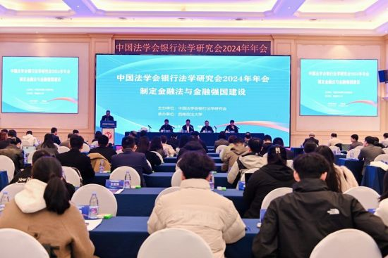 中国法学会银行法学研究会2024年年会暨“制定金融法与金融强国建设”学术研讨会于11月30日在西南政法大学主会场采取线上线下方式隆重召开。200余人线下参加本次年会。开幕式由银行法学研究会副会长、西南政法大学副校长岳彩申教授主持,承办单位西南政法大学党委常委、副校长王怀勇致辞,嘉宾中国法学会领导王俊峰副会长、最高人民检察院实务领导经济犯罪检察厅贝金欣副厅长致辞,银行法学研究会王卫国会长做年度工作报告。