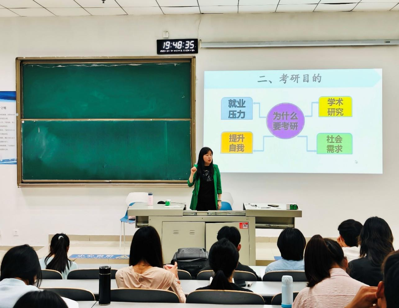 在读本科生举办“考研方法与技巧”专题辅导讲座。参加本次讲座的学生有刚入学不到一年的2024级大一新生,有正在思考是否考研的2023级大二学生,也有正在筑梦备考的2022级大三学生。
