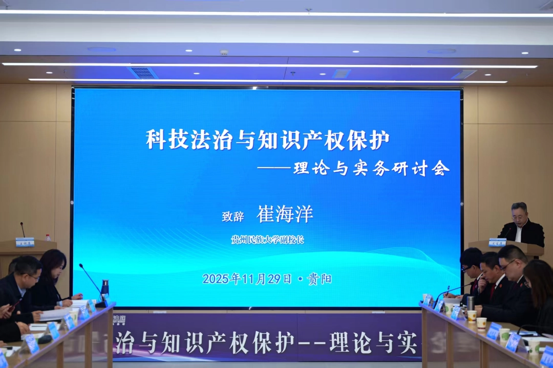 、贵阳知识产权法庭、贵州省法学会法学教育研究会、贵州省法学会知识产权法学研究会联合承办,贵阳市律师协会、贵州商学院知识产权研究院协办的“科技法治与知识产权保护——理论与实务研讨会”在贵阳知识产权法庭召开。来自全国多所高校、科研机构、司法机关及实务部门的专家学者齐聚一堂,围绕科技法治与知识产权保护的理论前沿与实务热点展开深入交流。