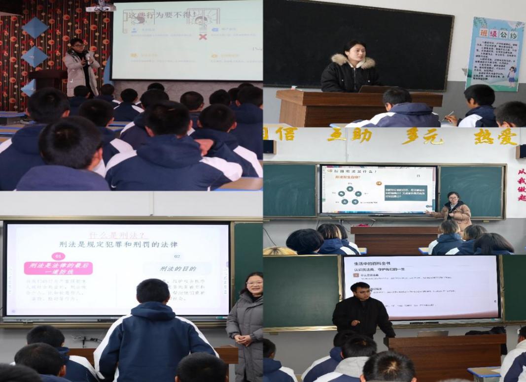 上午9:00,普法课程正式拉开帷幕。各班级同步开启第一节课的教学,不同课堂的法律知识讲解各有侧重却又紧扣“守护明天始于心,法治护航践于行”主题。女生班的课堂上,王肃以《中华人民共和国宪法》为核心,从公民的基本权利与义务出发,结合未成年人的身份特点,用“权利与年龄的关系”这样贴近生活的视角,让同学们理解宪法并非遥不可及的“大法律”,而是守护每个人成长的根本准则。提升班郭行行以《个人信息保护法》为主题,聚焦未成年人网络信息安全,通过“游戏账号泄露的危害”“陌生链接能否点击”等真实案例,教育引导同学们识别个人信息泄露的风险,掌握保护自身信息的方法,不侵犯别人个人信息。立志班聂霜讲解的《中华人民共和国劳动法》,虽看似与未成年人距离较远,却从“未成年人劳动权益边界”“杜绝童工现象”等角度,让同学们明晰自身权益的法律底线。特训2班的课堂上,董姝含围绕《刑法案例解读》,选取未成年人易涉入的危险驾驶罪、电信诈骗罪等典型案例,用“案例还原+法律分析”的方式,让同学们直观认识到违法犯罪行为的后果。特训1班刘浚粼以《行为有边界,法律在身边》为题,以盗窃罪、聚众斗殴罪、故意毁坏财物罪为切入,通过课堂互动引导思考,旨在普及法律知识,警示不可触碰法律边界。